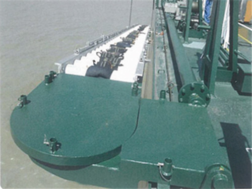 船舶舷梯的基本结构主要包括舷梯梯身和舷梯升降翻转固定装置两大部分。舷梯梯身又分为梯架、踏步、踏步传动杆、上平台、下平台、栏杆扶手、护木、侧向滚轮、下滚轮及轴销等部件和附件。舷梯升降翻转固定装置则由吊素、滚轮、横担、吊臂、传动管、支座、眼板和相关的轴销、卸扣、紧钩组成。梯节为钢质的称为钢质舷梯,梯节为铝质的称为铝质舷梯。